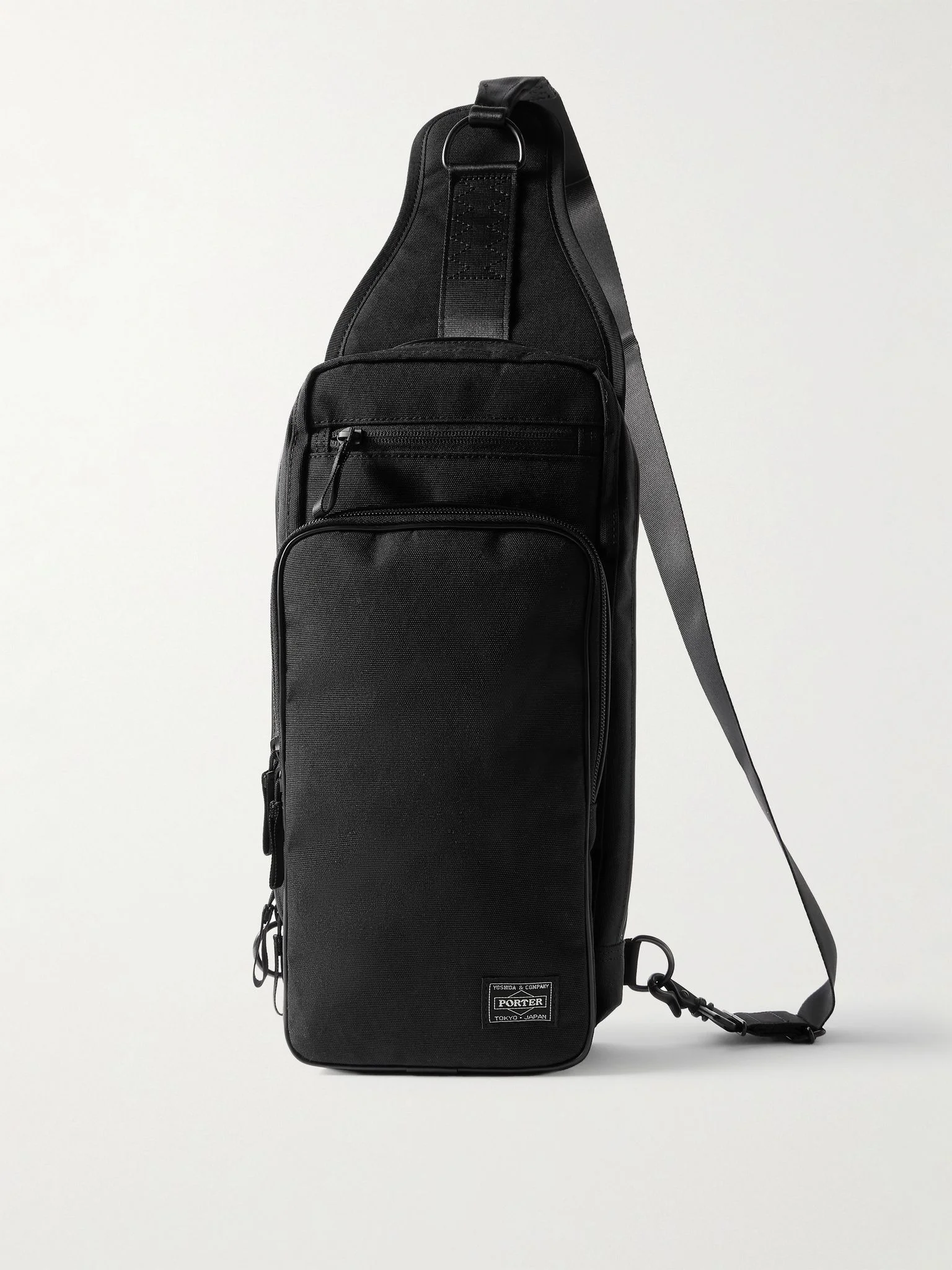 When you're packing light, Porter-Yoshida & Co's 'Hybrid Sling' backpack is perfect thanks to its slim shape. It's been made in Japan from durable nylon-canvas and fitted with multiple compartments. Details & Care - Black canvas - Adjustable shoulder strap - Front zipped pocket and zipped compartment - Internal Velcro® pocket and zipped mesh pocket - Unlined - Two-way zip fastening