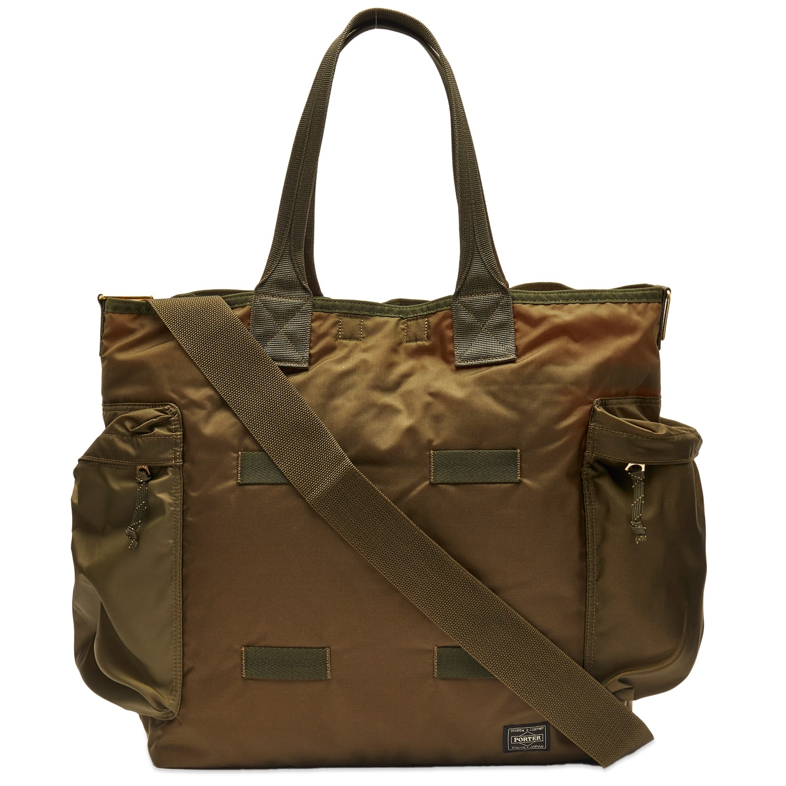 Established in 1935, Porter-Yoshida & Co. presents the Force 2-Way Tote Bag, an embodiment of the brand's commitment to quality and functionality. Crafted from military-grade nylon, the bag is near indestructible and features a removable pocket which can be used as a standalone pouch. With dual webbing straps, this tote can effortlessly transition between styles, reflecting the brand's innovative design heritage. - 100% Nylon - Main Compartment - Shoulder Straps - Exterior Zip Pockets - 2 Carry Handles - Woven Brand Label - Made in Japan