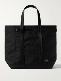 Porter-Yoshida & Co's 'Tension' tote bag is a practical choice for day-to-day tasks. Sized for a laptop and hardcover, it's been made in Japan from structured, tightly woven CORDURA® and is reinforced with webbing trims that also serve as the top handles. Secure small essentials in the front zipped pocket. Size & Fit - Handle Length: 18cm / 7.1in - Height: 36cm / 14.2in - Width: 47cm / 18.5in Details & Care - Black CORDURA® - Top handles - Front zipped pocket, internal zipped and slip pockets - Fully lined - Snap fastening