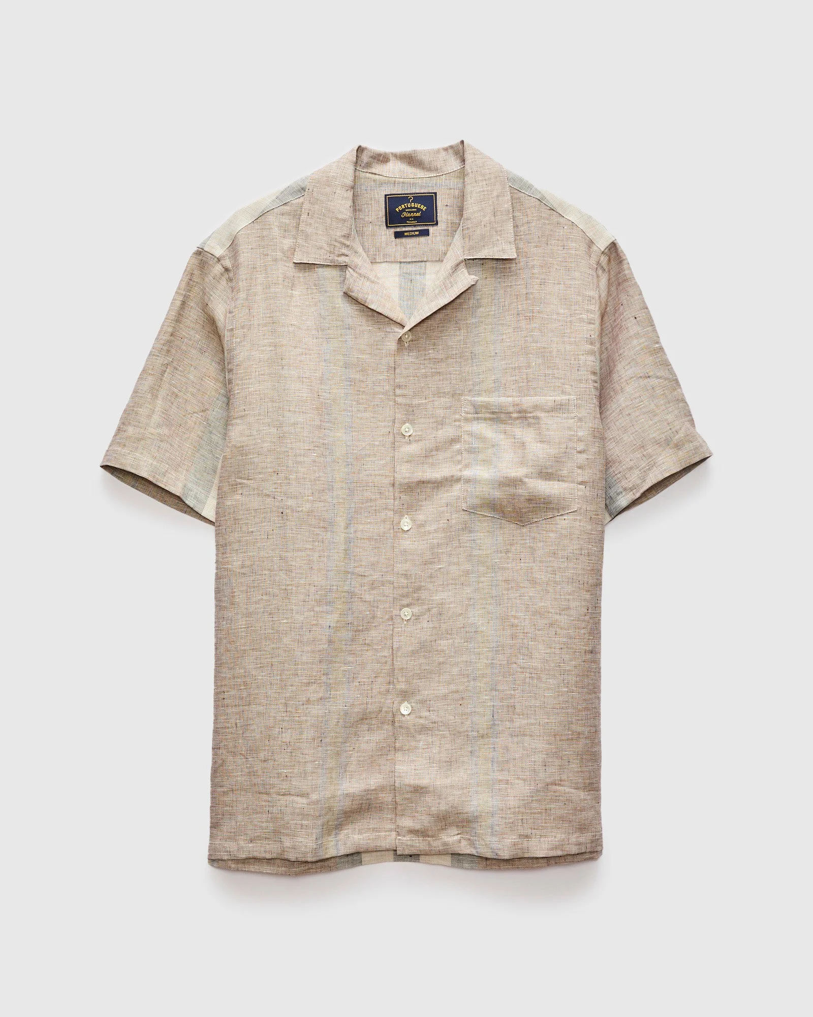 The Drift shirt from Portuguese Flannel is a short-sleeve button-up made using fabric from the brand's storied archive. The shirt is built using a breathable linen fabric woven using multicolor yarn. Cut in a regular fit and equipped with a single chest pocket. - Regular fit - Sewn using Portuguese fabric - Single front chest pocket - Mother of Pearl buttons - 100% linen - Made in Portugal