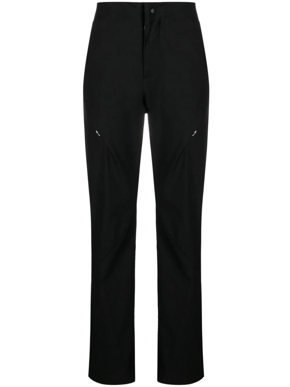 high-waist tapered-leg trousers Highlights - Black - High-waisted - Two zip-fastening pockets - Rear zip-fastening pocket - Tapered leg - Concealed fly and button fastening - Straight hem - When buying this unisex item, keep in mind that it is graded in standard men's sizing. Imported Composition Nylon 49%, Cotton 42%, Polyurethane 9% SIZE & FIT Model measurements Height 6 ft 1 in(1.86 m) Bust/Chest 37.4 in(95 cm) Hips 36.22 in(92 cm) Waist 29.52 in(75 cm) Measurement FRONT RISE 11.81 in(30 cm) INSIDE LEG 30.9 in(78.5 cm) Hem Width 17.32 in(44 cm) WAIST 30.7 in(78 cm) Outside Leg 42.12 in(107 cm) FittingInformation Designed for a straight-leg, allowing for an unrestricted and comfortable fit over the leg Made from a midweight non-stretch fabric This piece fits true to size – take your usual size Washing instructions Hand Wash