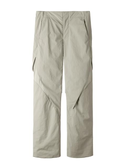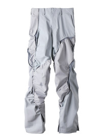 Technical pants with color contrasting panels asymmetrically arranged along the crack-lines. Darts placed along the line creates distinctive volume and silhouette. South Korean fabrics. Membrane coated, water repellent, and breathable 3-layer light performance fabrics. Stretchable and durable fabric. 2 pockets at front with bartack finish. riri COBRAX press-stud and elasticated waistband. YKK fly zipper at front. 비대칭적인 크랙 라인과, 대비되는 색상의 패널이 교차 배열된 테크니컬 팬츠. 크랙을 따라 배치된 다트를 통한 특징적인 부피감과 실루엣 연출. 대한민국 원단. 멤브레인 코팅된, 발수 및 통기 능력이 우수한 안티드롭 마감의 3 레이어 경량 소재. 신축성과 내구성이 우수한 원단. 전면에 2개의 포켓과 바텍 마감. 허리 부분에 riri COBRAX 버튼과 엘라스틱 처리된 허리밴드. 전면에 YKK 플라이 지퍼. Size(Length/Waist/Thigh/Hem) S : 104.5cm/39cm/28.5cm/22cm M : 108cm/41cm/31cm/22.5cm L : 111.5cm/43cm/33.5cm/23cm XL : 115cm/45cm/36cm/23.5cm Nylon 95% Elastane 5% Polyester 100% Nylon 80% Elastane 20% Made in South Korea.