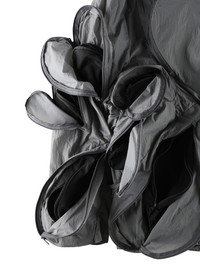 Jacket projecting asymmetrical variation onto the three-dimensional pockets of the garment, representing nature’s unpredictable organic form. Irregular shape and size of the pockets, offering versatile storage for daily essentials. Line stitch and dart details for comfort movement. South Korean fabric. Water resistant and durable fabric. 19 double layered pockets with YKK zipper at front. Standard notch lapels. 예측 불가능한 자연의 유기적 형태를 반영한, 3차원 포켓의 불규칙적인 변형이 돋보이는 디자인의 자켓. 다용도 수납 공간을 제공하는 다양한 크기와 형태의 포켓. 라인 스티치와 다트 디테일로 편안한 움직임 구현. 대한민국 원단. 내구성이 뛰어난 생활방수 원단. 19개의 포켓과 YKK 지퍼. 노치드 라펠. Size(Length/Chest/Arm/Shoulder) M : 77cm/55cm/64cm/47cm L : 80cm/57.5cm/66.5cm/49cm Nylon 100% Polyester 100% Cotton 78% Nylon 18% Polyurethane 4% Made in South Korea. * This product is a order made item and may take up to 3 months to ship after the order is placed. Please note that exchanges and refunds for this product are not available. * 본 제품은 주문제작 상품으로, 주문 후 발송까지 최대 3개월이 소요될 수 있으며, 교환 및 환불이 어려운 점 참고 부탁드립니다.