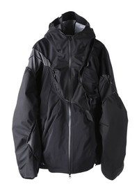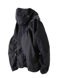 Technical jacket with color contrasting panels asymmetrically arranged along the crack-lines. Darts placed along the line creates a distinctive volume and silhouette. South Korean fabrics. Membrane coated, water repellent, and breathable 3-layer light performance fabrics. Stretchable and durable fabric. YKK VISLON® AquaGuard® zipper at front. 2 pockets at front with bartack finish. Hem with elastic string and logo engraved stopper. 비대칭적인 크랙 라인과, 대비되는 색상의 패널이 교차 배열된 테크니컬 자켓. 크랙을 따라 배치된 다트를 통한 특징적인 부피감과 실루엣 연출. 대한민국 원단. 멤브레인 코팅된, 발수 및 통기 능력이 우수한 안티드롭 마감의 3 레이어 경량 소재. 신축성과 내구성이 우수한 원단. 전면에 YKK VISLON® AquaGuard® 지퍼. 전면에 2개의 포켓과 바텍 마감. 엘라스틱 스트링과 스토퍼를 활용한 밑단 둘레 조절 시스템. Size(Length/Chest/Arm-Shoulder) XS : 65.5cm/57.5cm/78cm S : 68cm/59cm/79.5cm M : 70.5cm/60.5cm/81cm L : 73cm/62cm/82.5cm XL : 75.5cm/63.5cm/84cm Nylon 95% Elastane 5% Polyester 100% Nylon 80% Elastane 20% Made in South Korea.