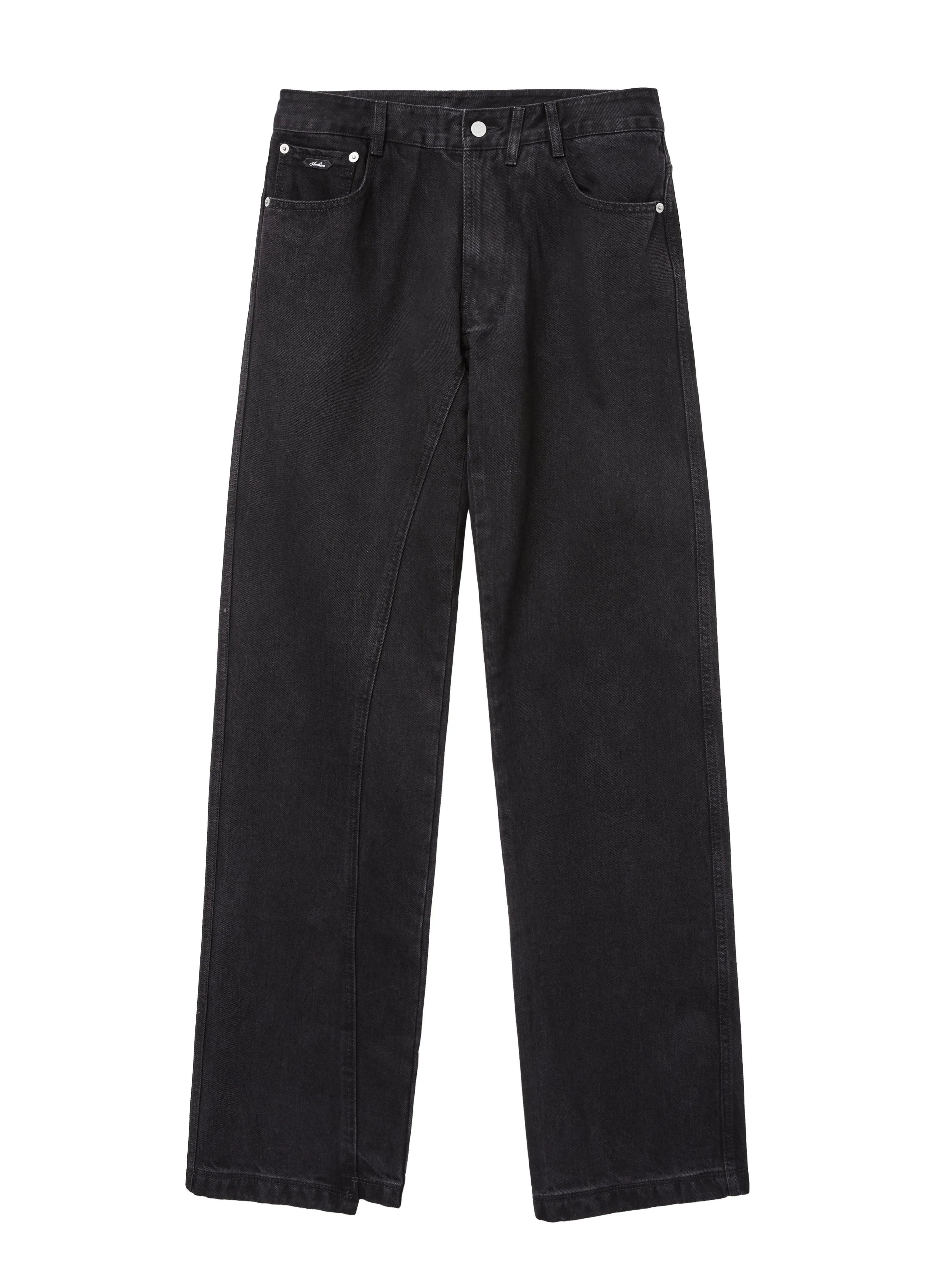 Bio-washed soft denim Button waist closure and zip fly Six belt loops along the waist Two side pockets and one coin pocket at front Two asymmetric back pockets Fully lined back pockets Diagonal in-seam detail Asymmetrical right hem construction ARCHIVE label on coin pocket Straight, relaxed fit Denim from Turkey Details YKK EXCELLA® zipper Logo engraved YKK CANTON® YKK revet Composition Fabric 1 : Cotton 100% Size Guide Size(Length/Waist/Thigh/Hem) S : 109.5cm/38cm/28.75cm/21.5cm M : 112.5cm/40.5cm/30cm/22.5cm L : 115.5cm/43.5cm/31cm/23.5cm XL : 118.5cm/45.5cm/32.5cm/24.5cm