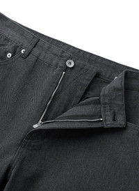 Washed in black Curved side seams Catone waist clousre and zip fly on front Two hand pockets and one coin pocket on front Two back pockets with curved stitches Soft and relaxed silhouette Fabric from Japan Details YKK Rivet YKK CANTONE® YKK EXCELLA® zipper Made in South Korea Composition Body : Cotton 100% Pocket : Cotton 100% Size Guide Size (Length/Waist/Thigh/Hem) S : 109.5cm/38cm/31.6cm/21cm M : 112cm/40.5cm/33cm/22cm L : 114.5cm/43cm/34.4cm/23cm XL : 117cm/45.5cm/35.8cm/24cm Model height 184cm, size M