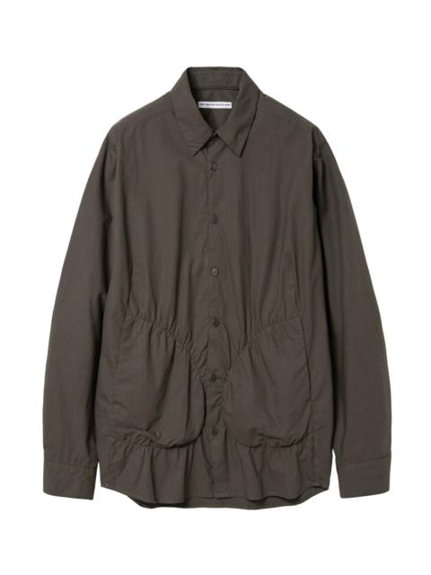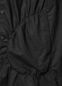 Straight point collar Front button closure Buttoned cuffs Two hand pockets Shirred construction along pockets Hanging loop at back yoke Two back pleats Logo-engraved buttons Oversized fit Fabric from South Korea Details Logo-engraved button Composition Fabric 1 : Cotton 100% Pocket : Nylon 85% Polyurethane 15% Size Guide Size(Length/Chest/Arm/Shoulder) S : 73.5cm/61cm/62cm/49cm M : 76.5cm/64cm/64cm/51cm L : 79.5cm/67cm/66cm/53cm XL : 82.5cm/70cm/68cm/55cm