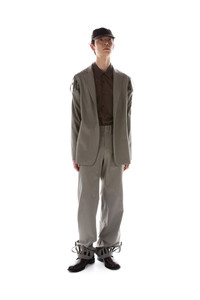 Asymmetrically trimmed ankle hem Zip fly, button closure Two hand pockets on front Two welted pockets on back Suit set with Trimmed Jacket (2026) Button from Japan Fabric from South Korea Details YKK EXCELLA® zipper Made in South Korea Composition Body : Polyester 52% Rayon 17% Acetate 15% Modal 10% Elastane 6% Pocket : Cupra 50% Polyester 50% Size Guide Size (Length/Waist/Thigh/Hem) S : 107.5cm/39cm/30.6cm/21cm M : 110cm/41.5cm/32cm/22cm L : 112.5cm/44cm/33.4cm/23cm XL : 115cm/46.5cm/34.8cm/24cm Model height 183cm, size M