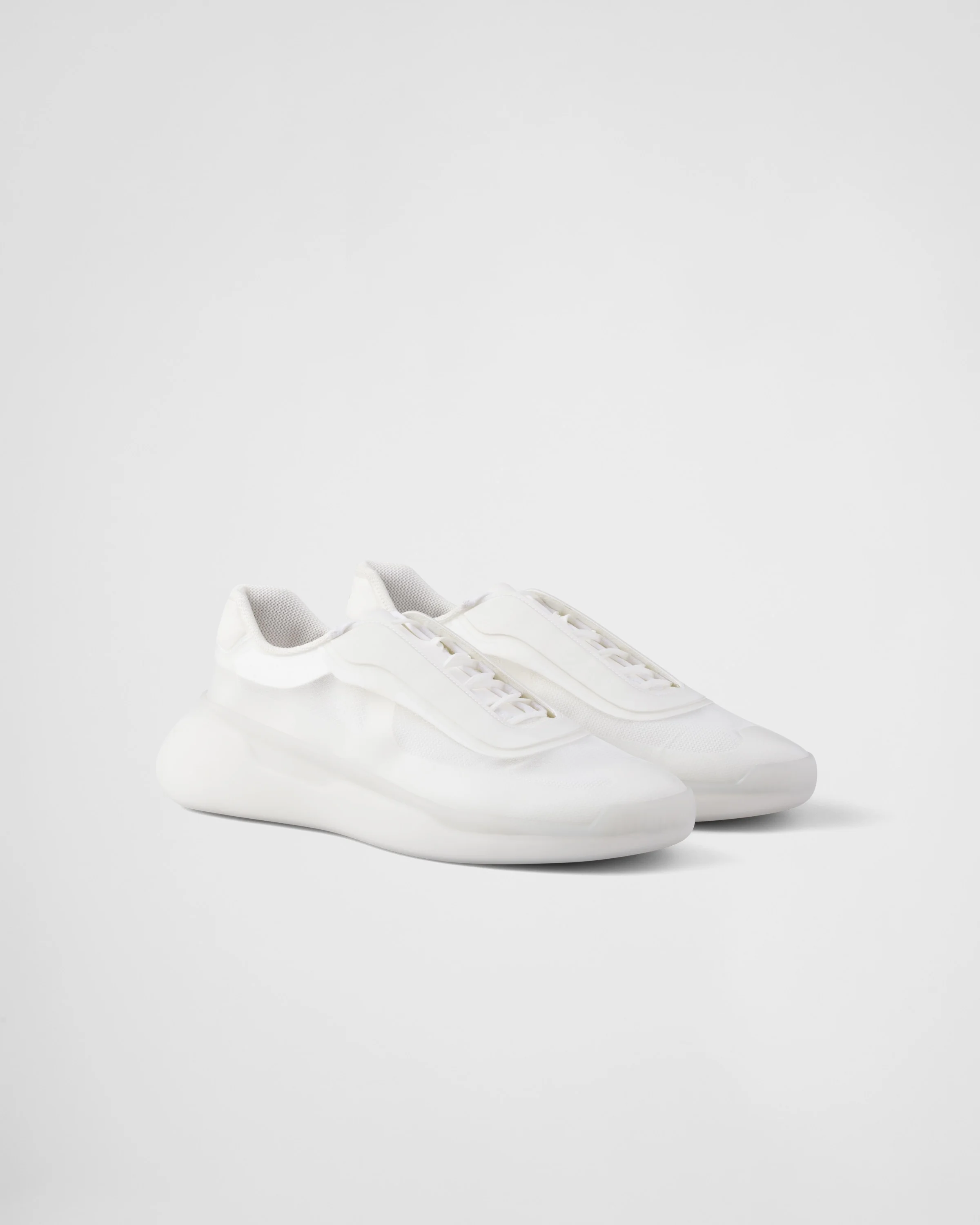 Function and innovation come together to define these Re-Nylon sneakers with a contemporary character, completed by light soles and minimalist details. This product does not contribute to the SEA BEYOND educational program. - Product code: 4E3608_78M_F0009_F_G000 - Heat-sealed tape on the upper - Screen-printed Prada logo - Nylon tape loops for laces - TPU sole with ultra-lightweight expanded rubber filler - Patterned rubber tread - Sole height: 40 mm - Removable fabric-covered insole - Imported MATERIALS Main material: Nylon polyester polyurethane