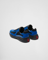 These patent leather sneakers with bike fabric inserts are inspired by an iconic aesthetic. The unmistakable Prada Linea Rossa logo on the tongue and sole enhances the design. - Product code: 4E3400_ASZ_F0C6S - Upper: patent leather and technical fabric - Prada Linea Rossa logo on the tongue and sole - 40 mm light, flexible rubber sole - Rubber tread - Imported MATERIALS Fabric/leather