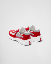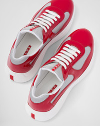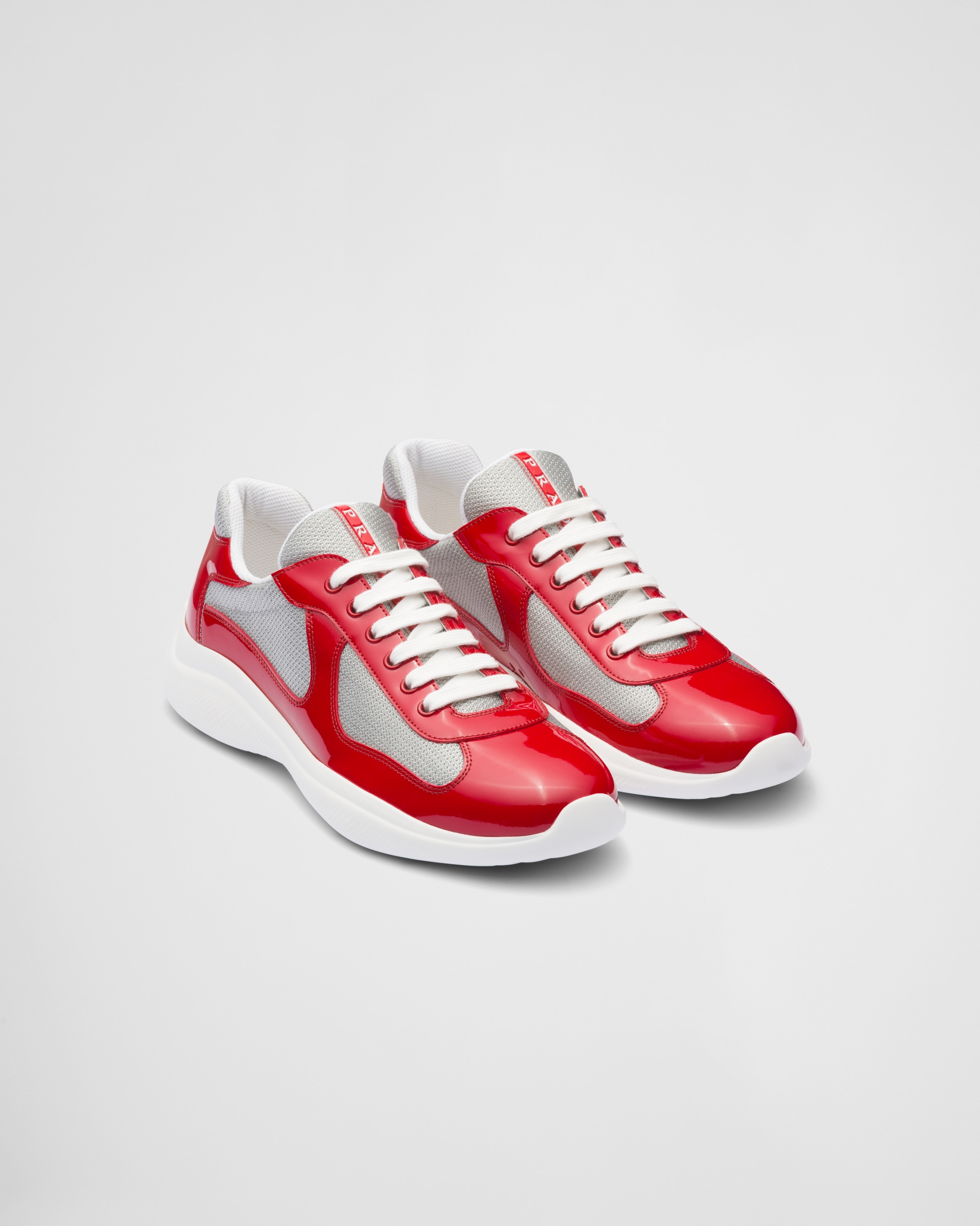 These patent leather sneakers with bike fabric inserts are inspired by an iconic aesthetic. The unmistakable Prada Linea Rossa logo on the tongue and sole enhances the design. - 商品品番: 4E3400_ASZ_F0F5C - Upper: patent leather and technical fabric - Prada Linea Rossa logo on the tongue and sole - 40 mm light, flexible rubber sole - Rubber tread - インポート MATERIALS Fabric/Leather