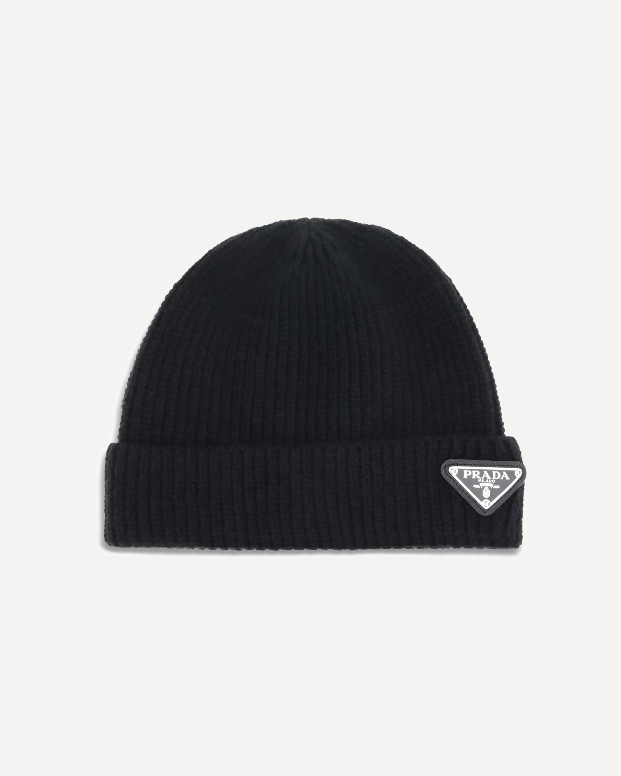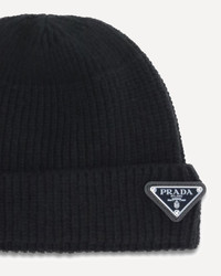Prada's beanie Hat with logo plaque is an essential accessory with distinctive character. Made with ribbed lapels for a snug and comfortable fit, it is embellished with the iconic triangular side plaque, a symbol of the brand's minimalist and recognizable aesthetic. Perfect for completing casual looks with a touch of urban elegance. DETAILS - Sku: 2HC4263IM_F0002 - Season: AW25 - Composition: GENERAL 65% Fleece Wool 25% Kashmir/capra Hircus 9% Nylon 1% Elastane - MADE IN ITALY