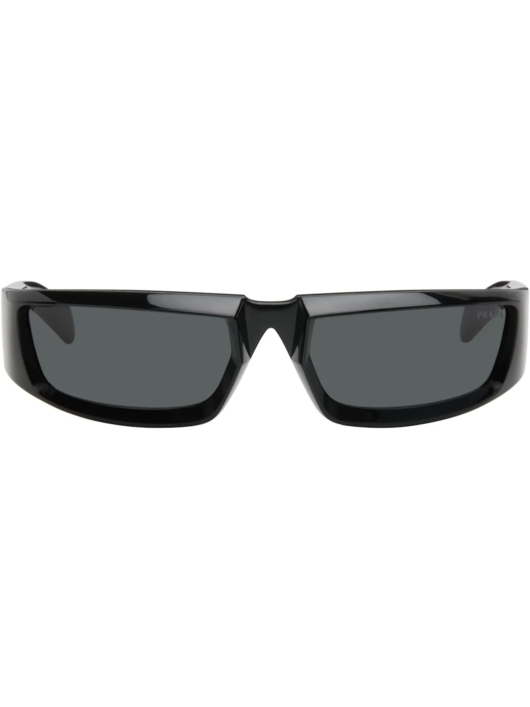 Shield-style wraparound acetate-frame sunglasses. · Gray lenses · 100% UVA/UVB protection, category 3 · Logo etched at lens · Integrated nose pads · Logo hardware at temples · Includes case · Size: 63.20 120 Supplier color: Black Acetate. Made in Italy 261208M134063