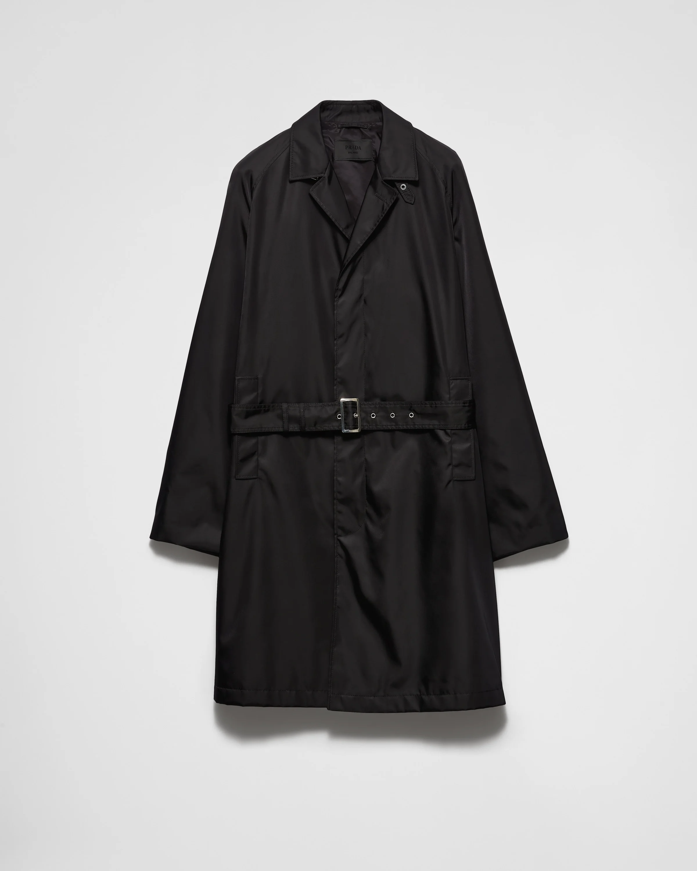 This classic and functional coat is made of Re-Nylon that gives the minimalist design versatile and contemporary style. For sustainable product care and to preserve its characteristics and reduce the dispersion of microfibers, avoid frequent washing, air out the garment after each use, and have it dry cleaned by a specialized, ecological dry cleaner. - Product code: SGC745_1WQ8_F0002_S_OOO - Loose fit - Lapel collar - Raglan sleeves - Four-button closure - Wide welt pockets - Cuffs with strap and button - Wide shoulder - Back vent - Partially lined - Detachable belt - Fabric triangle on the back - The fabric is made of regenerated nylon yarn obtained from recycled plastic materials collected in the ocean - Imported - The model is 189 cm tall and wears a size 48 Height: 104cm MATERIALS Main material: 100% recycled polyamide
