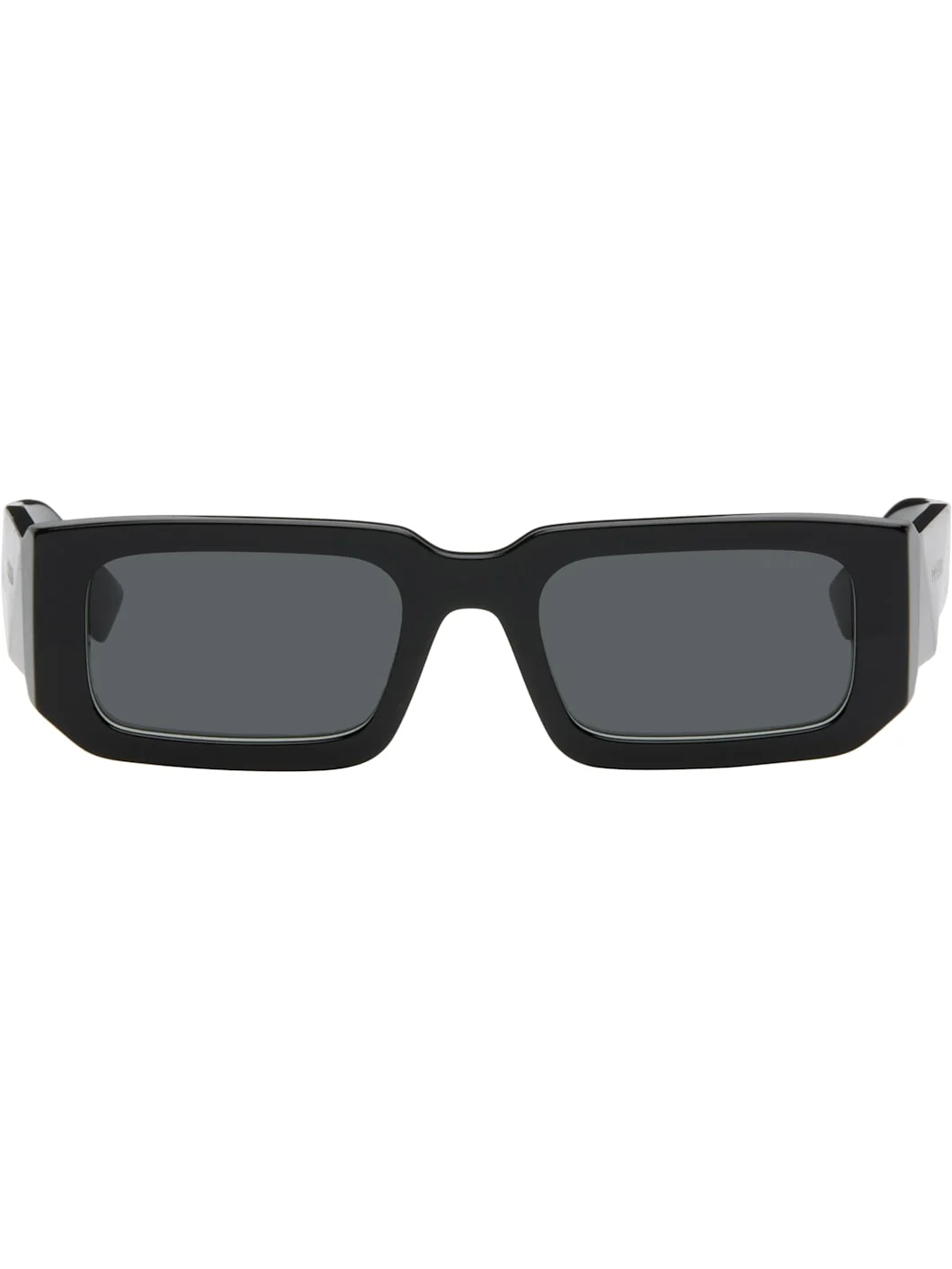 Rectangular acetate-frame sunglasses. · Gray lenses · 100% UVA/UVB protection, category 3 · Logo etched at lens · Integrated nose pads · Logo stamp at temples · Includes case · Size: 53.21 145 Supplier color: Black white/Dark grey Acetate. Made in Italy 261208M134052