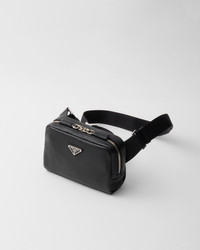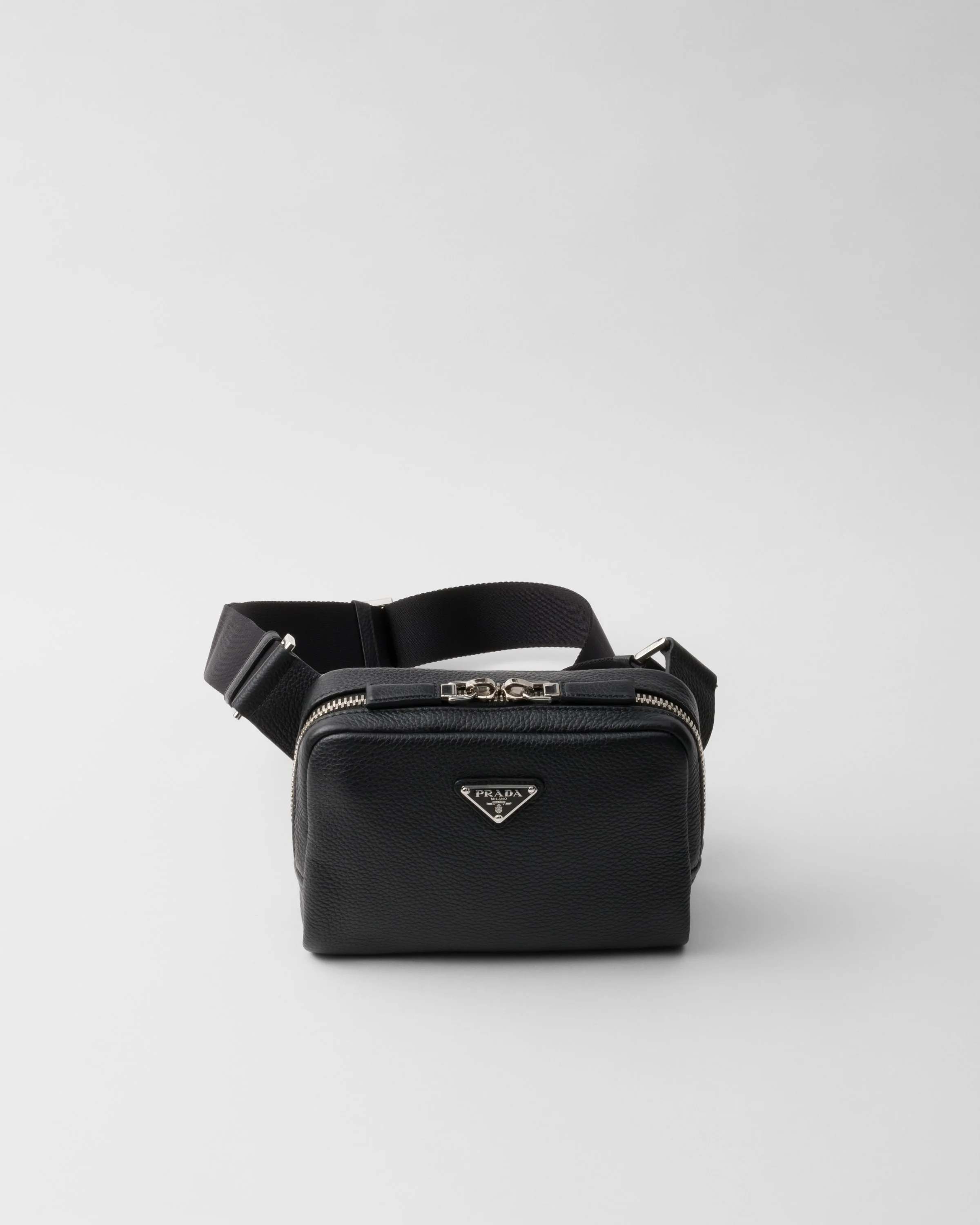 This leather shoulder bag with a structured silhouette and sleek lines is characterized by its compact design with zipper and is decorated with the iconic triangle logo. - Product code: 2VH184_2BBE_F0002_V_OOO - Adjustable leather shoulder strap. Maximum length 110 cm - Minimum length 60 cm - Enameled metal triangle logo on the front - Zipper closure - Flat back pocket - Interior with zipper pocket - Logo-print Re-Nylon lining - Imported Height: 13.5cm Width: 19.5cm Length: 6cm MATERIALS Main material: Calfskin