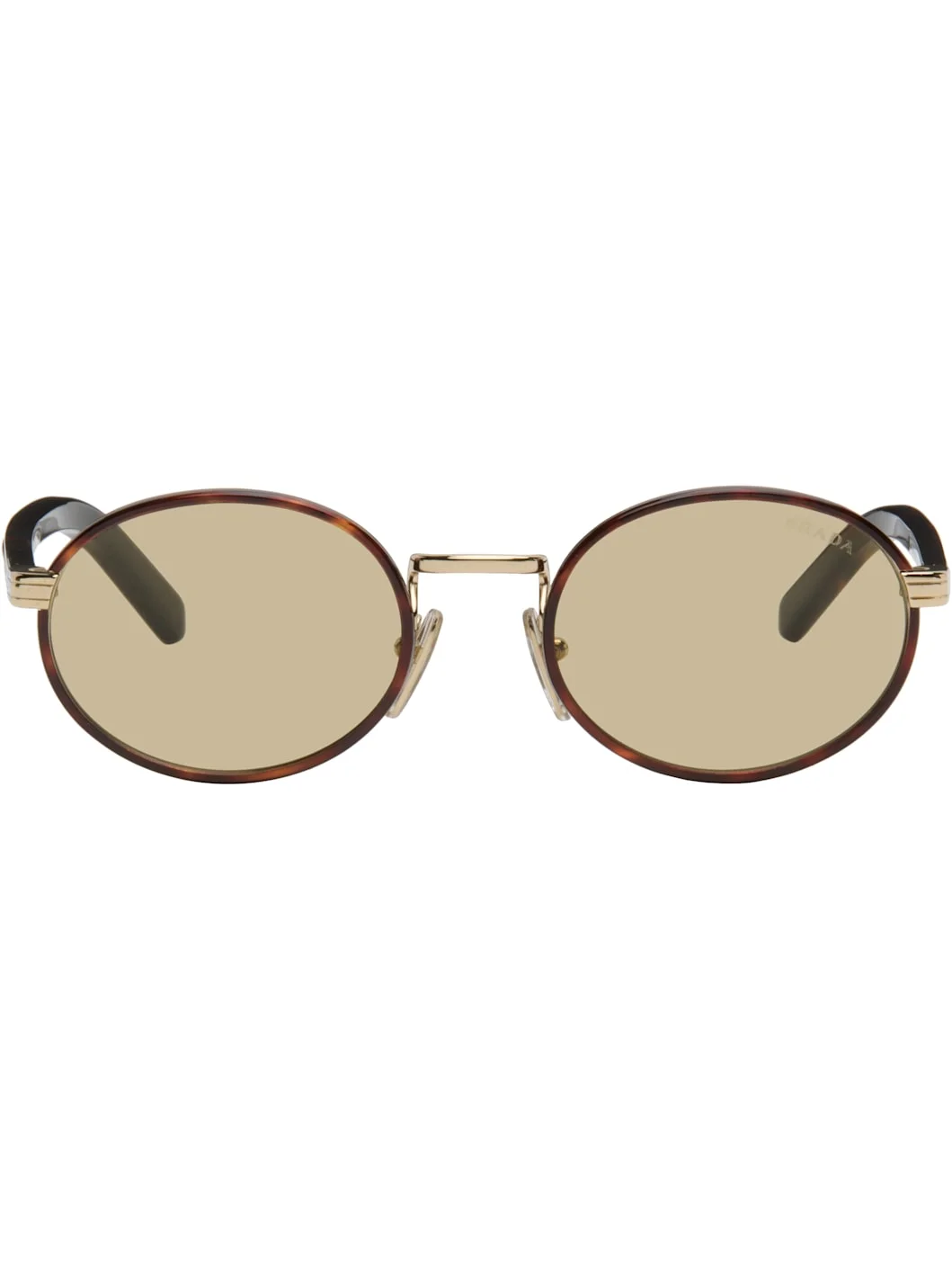 Round metal-frame sunglasses. · Brown lenses · 100% UVA/UVB protection, category 3 · Logo etched at lens · Adjustable rubber nose pads · Logo-etched inset metal plaque at acetate temples · Gold-tone hardware · Includes case · Size: 52.20 145 Supplier color: Root tortoise Metal, acetate. Made in Italy 252208M134004