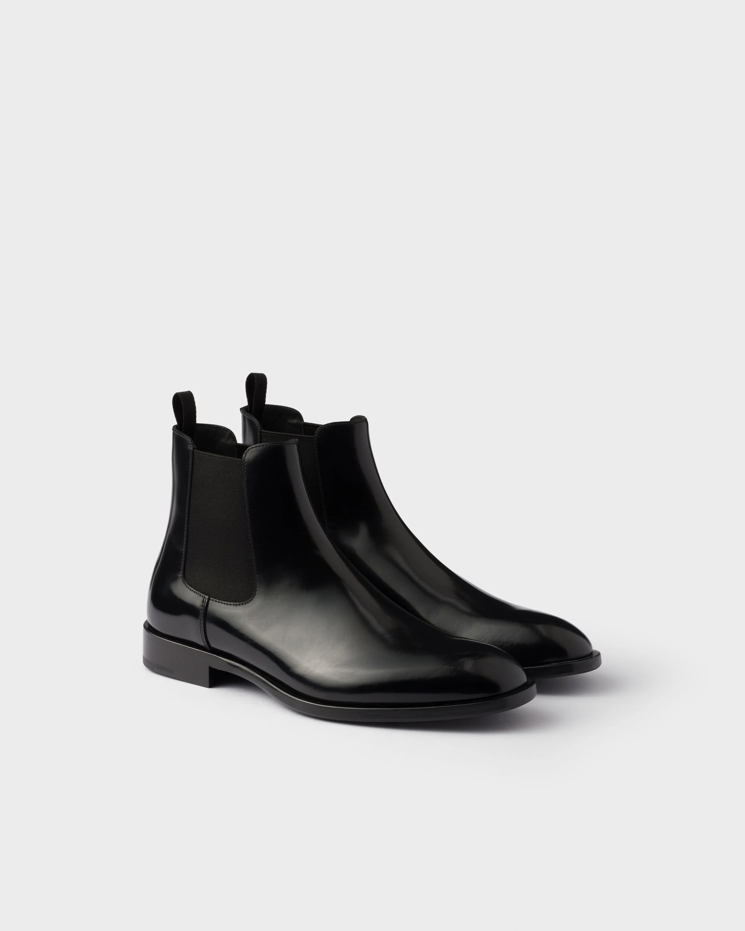 Chelsea boots, a classic with timeless style, are reinterpreted with a minimalist design and contemporary character. The artisan construction defines a sleek, tapered silhouette emphasized by the refined brushed leather finish. - Product code: 2TB058_055_F0002_F_X024 - Elastic side gusset - Leather sole with rubber half-sole and heel layer - Heel height: 20 mm - Leather insole - Imported MATERIALS Main material: Calfskin