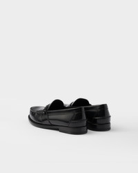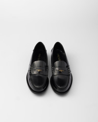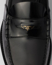 The refined lines and unmistakable features of the classic penny loafer are reinterpreted in these timeless shoes. The elegant brushed leather finish emphasizes the style with artisanal details. - Product code: 2DB222_055_F0002_F_X000 - Band with enameled triangle - Leather sole with rubber half-sole and heel cap - Heel height 025 mm - Imported MATERIALS Main material: Calfskin