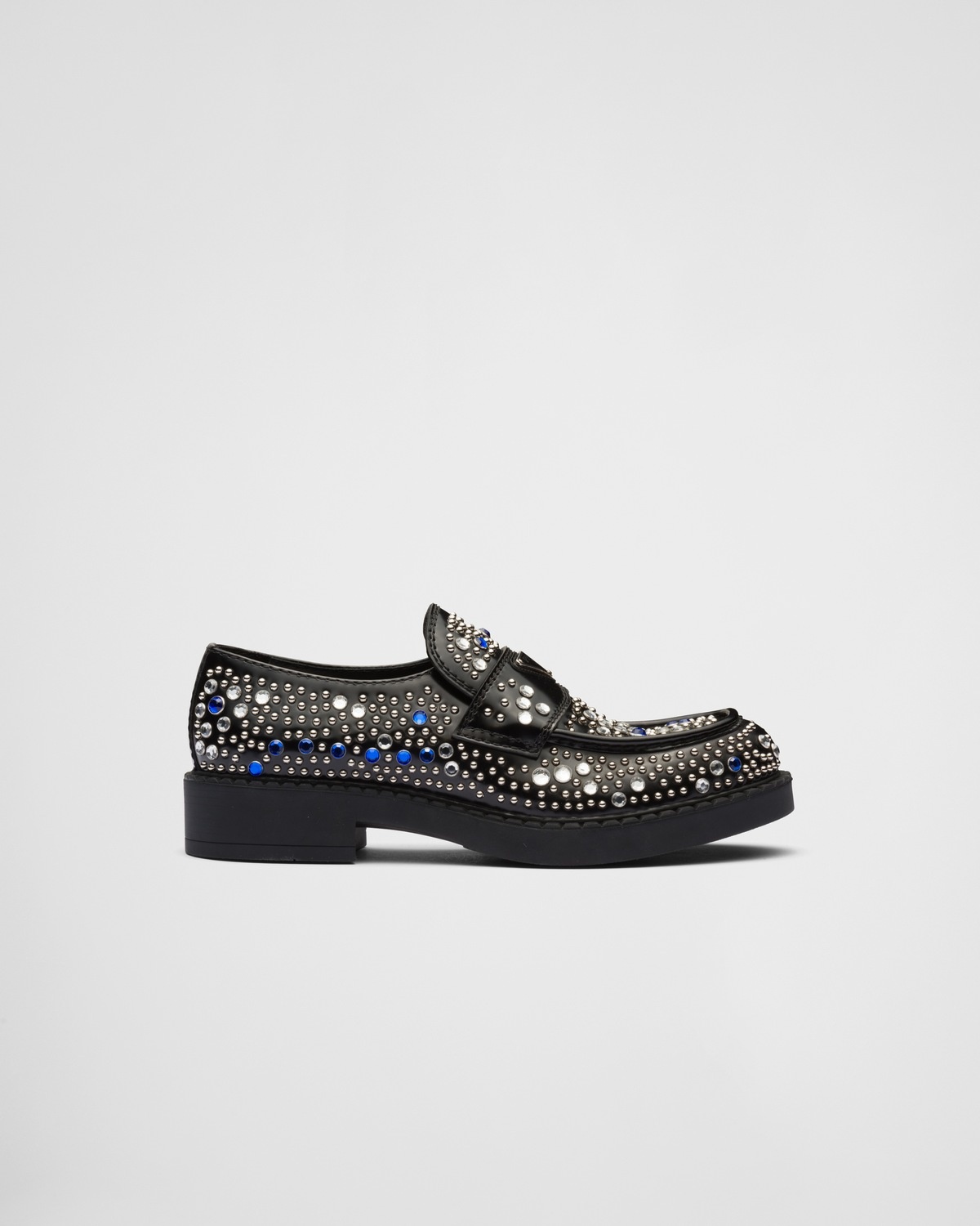 Brushed leather loafers with studs and rhinestones