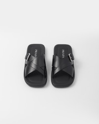 Brushed leather slides