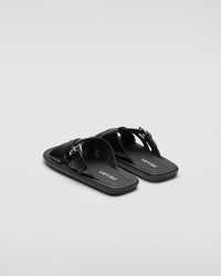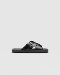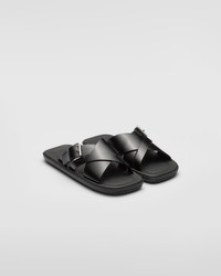 With a double crisscross band on the front and strap with buckle on the side, these brushed leather slides have a sleek design. The rubber sole makes the shoe comfortable and light. - Product code: 2X3092_B4L_F0002_F_G001 - Upper with metal buckle - Rubber sole - Leather-covered insole with stitched edge - Imported MATERIALS Leather