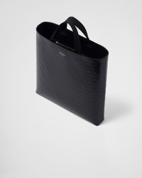 This tote bag with a minimalist design recalling Prada leather goods in the 90s has vertical proportions and an almost invisible construction. The sleek silhouette meets technical details like the woven tape handles. The incorporated thermos is easily removed and held in place with straps. The hot-stamped embossed design reveals a tonal pattern inspired by the iconic Symbole motif. - Code du produit: 2VG113_ZO6_F0002_V_TOO - With hot-stamped embossed motif - Woven tape handles - Hot-stamped logo on the front - Interior with zipper pocket - Logo-print Re-Nylon lining - With thermos and straps inside - Taille: 38cm - Largeur: 36cm - Longueur: 6cm - Importé