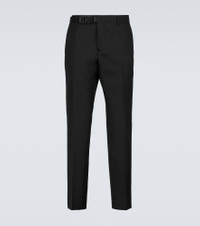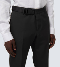 Tailored in a tapered fit, these black wool pants from Prada are detailed with a side buckle belt at the waist, and can be worn with its matching blazer. Product Details - Closure: zipper fly, button and hook fastenings - Attached belt, Belt loops - Designer color name: Black - Made in Italy - Material: 100% virgin wool - Pockets: side slit pockets, back pockets - Lining: 100% viscose, partially lined - Item number: P00628607 Size & Fit - True to size - Adjustable at the waist - Tapered leg - The model in the picture is 185cm-6'1" and wearing a size IT 48