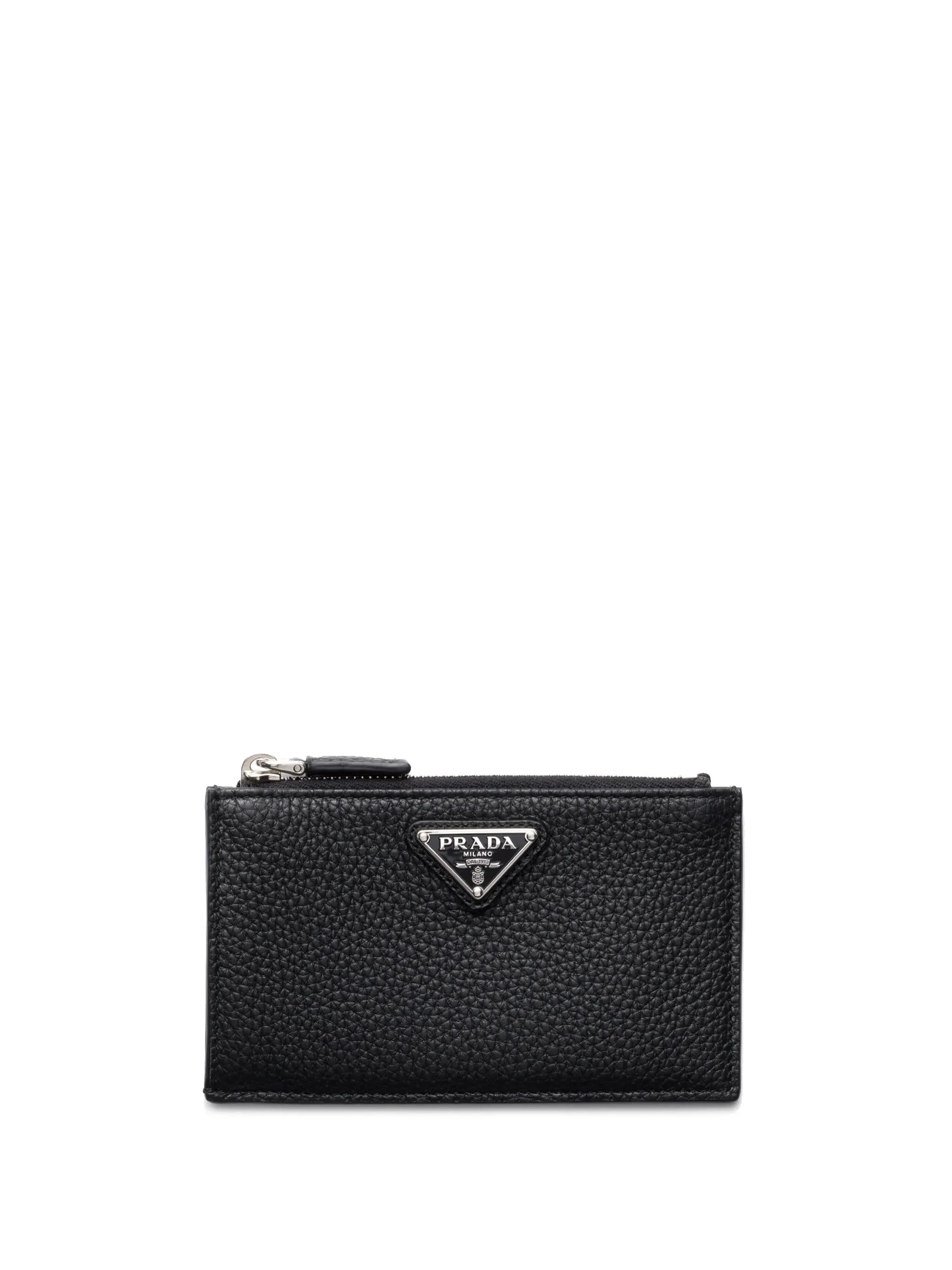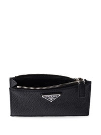 black Saffiano leather top zip fastening enamel triangle logo rear card slots - length: 13.0 centimetres, width: 8.0 centimetres - Color: BLACK - Made in: Italy - Designer Style ID: 2MC086 2E54 F0002 Composition and care Outer Composition Leather: 100.0%