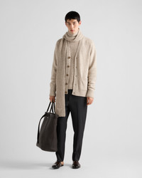 Oversized lines with a relaxed attitude define this cardigan made of fine cashmere and completed with the simple yet iconic shape of the triangle logo. - Product code: UMG345_145M_F0F24_S_OOO - Plain knit - Oversized fit - Ribbed knit trim - Semi-raglan shoulder - Ribbed knit cuffs and hem - Knit triangle logo - Front button closure - Patch pockets - Imported - The model is 189 cm tall and wears a size 48 Height: 74cm MATERIALS Main material: 100% cashmere