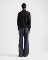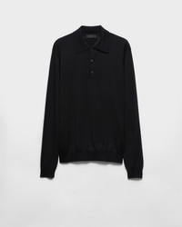 Made with a blend of fine cashmere and silk yarn, this polo shirt with classic lines embodies simple elegance and timeless style. - Product code: UMF031_0B8_F0002_S_OOO - Plain knit - Regular fit - Ribbed knit collar - Semi-raglan shoulder - Ribbed knit cuffs and hem - Knit triangle logo - Front button closure - Imported - The model is 190 cm tall and wears a size 48 Height: 66cm MATERIALS Main material: 30% silk 70% cashmere