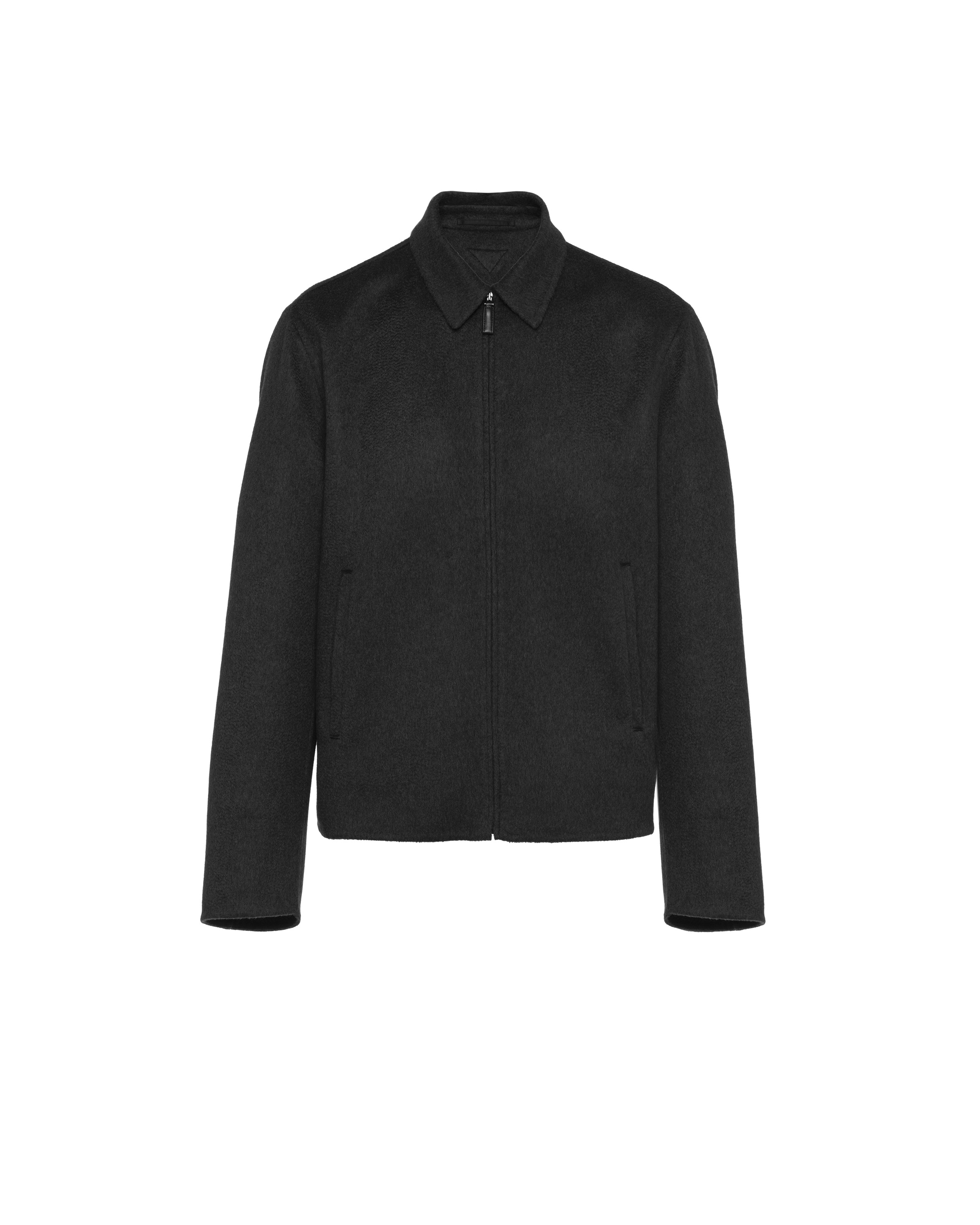 Speaking simultaneously about sportswear and formality, classicism and futurism, the Spring Summer 2021 collection focuses on the quintessence of Prada. This cashmere blouson jacket blends innovative spirit and Italian know-how and is characterized by the triangle logo, which first appeared on trunks designed by Mario Prada. - Product code: SGB724_1YE6_F0002_S_211 - Regular fit - Shirt collar - Straight sleeves - Zipper closure - Welt pockets - Straight cuffs - Regular shoulders - Straight hem - Unlined - Double cloth - Fabric triangle - Height: 64cm - Imported MATERIALS Cashmere