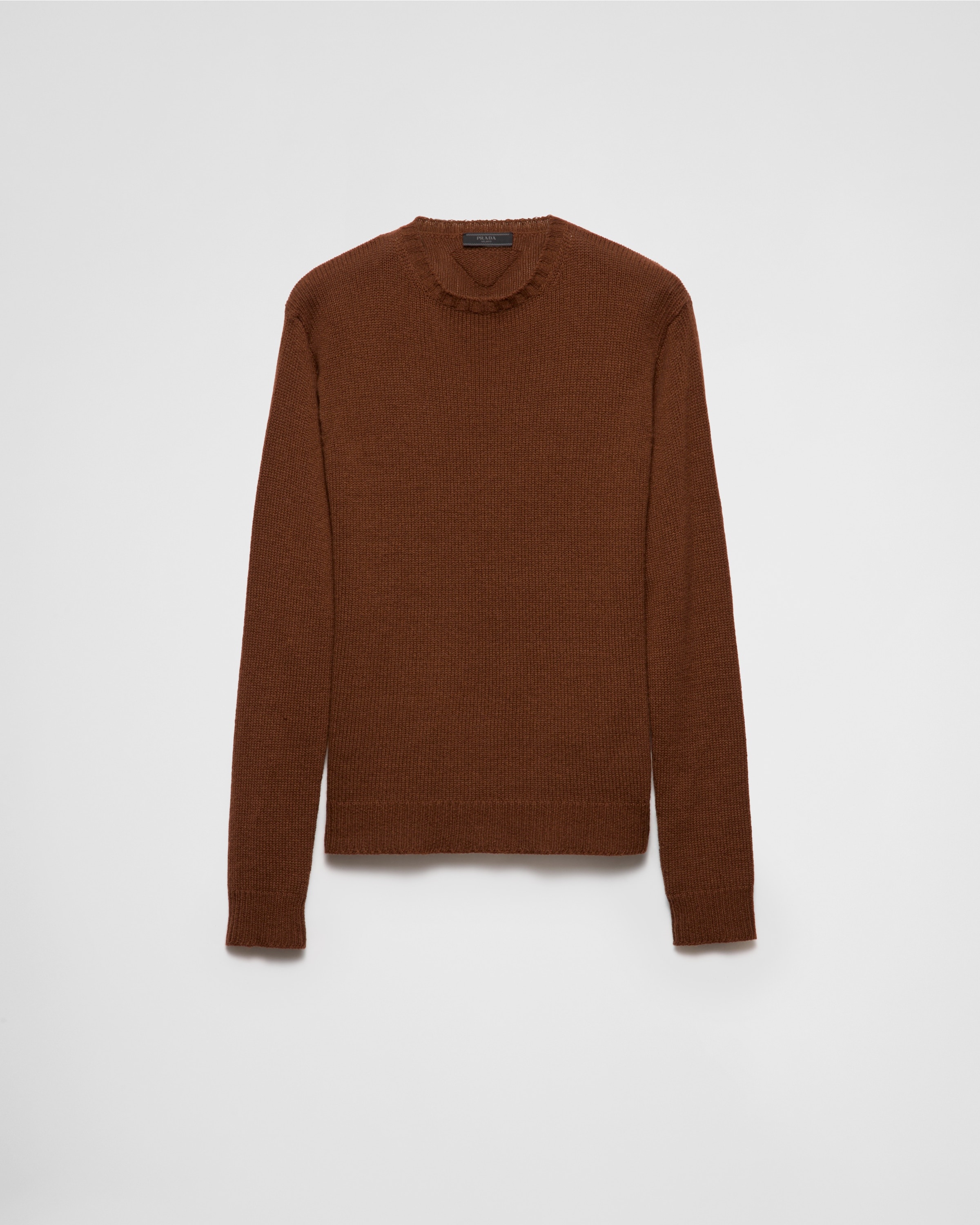 Classic lines with timeless style define this crew-neck sweater in soft, fine cashmere with a sleek silhouette. - Product code: UMB882_15O5_F0005_S_OOO - Plain knit - Slim fit - Ribbed knit crew-neck - Raglan shoulder - Ribbed knit cuffs and hem - Knit triangle logo - Imported - The model is 189 cm tall and wears a size 48 Height: 64cm MATERIALS Cashmere