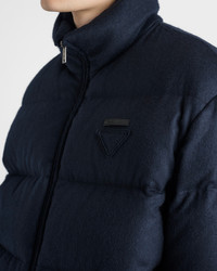 The soft, precious feel of cashmere embellishes this down jacket with a sporty design, completed by warm goose down padding. Sleek details give the style a versatile and contemporary character. - Product code: SGC921_17XT_F0008_S_OOO - Loose fit - Stand-up collar - Straight sleeve - Zipper closure - Welt zipper pockets - Elasticized cuff - Drop shoulder - Straight hem - Elasticized drawstring - Lined and padded with goose down - Cashmere fabric triangle and sartorial logo label - Imported - The model is 191 cm tall and wears a size 48 Height: 66cm MATERIALS Main material: 100% recycled cashmere