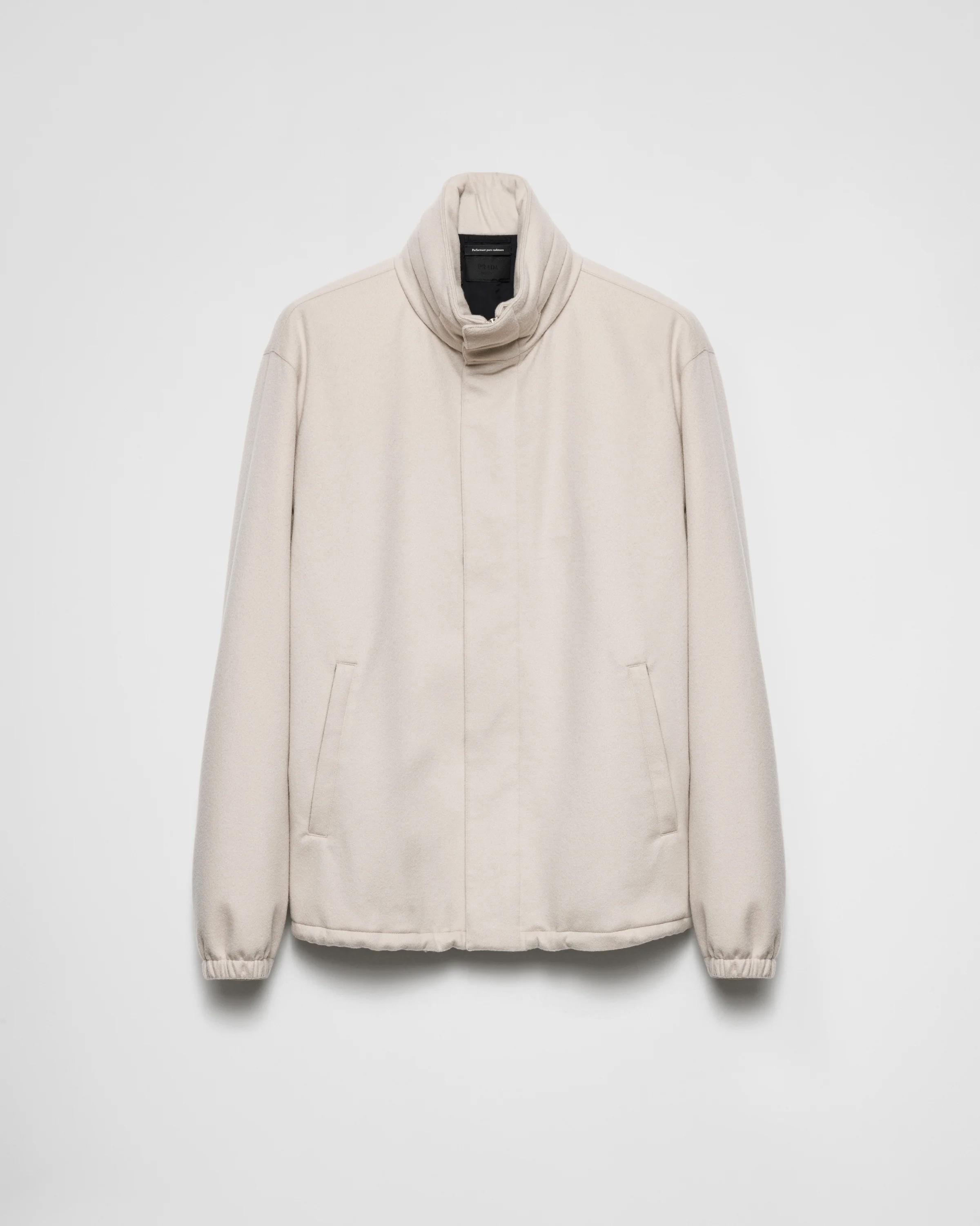 This fine cashmere jacket with a sophisticated, classic silhouette and pragmatic character is decorated with the sleek geometric shape of the iconic triangle logo. - Product code: SGC676_1YEQ_F0627_S_OOO - Regular fit - Stand-up collar - Straight sleeves - Zipper and snap closure - Welt zipper pockets - Elasticized cuff - Regular shoulder - Elasticized hem - Elastic drawstring - Lined - Fabric triangle logo on the back - Imported - The model is 189 cm tall and wears a size 48 Height: 72cm MATERIALS Main material: 100% cashmere