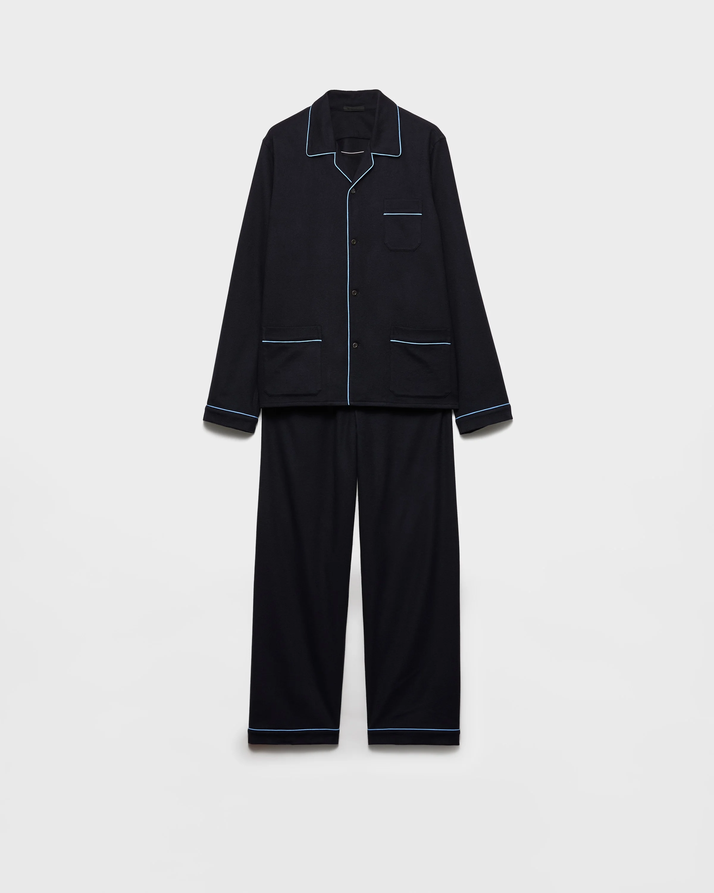 These pajamas with a classic cut combine sophistication and comfort. The style made of soft cashmere features mother-of-pearl buttons and contrasting piping. - Product code: PJ8B64_12R7_F0SVF_S_OOO - Mother-of-pearl button closure - Patch pocket - Contrasting piping - Tonal stitching - Imported - The model is 189 cm tall and wears a size 48 MATERIALS Main material: 100% Cashmere