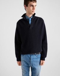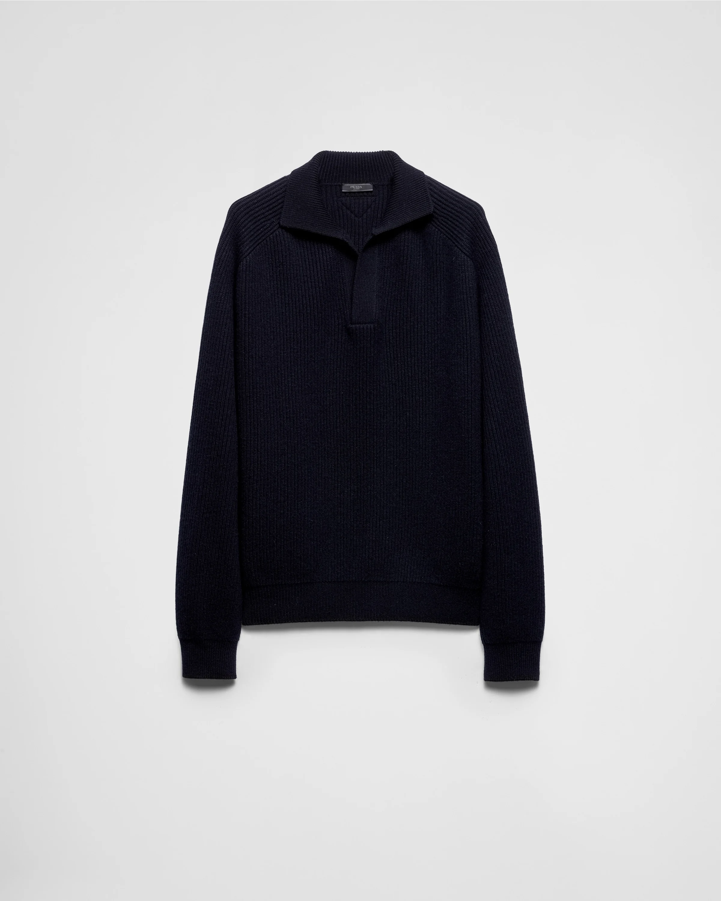 A soft line defines this soft cashmere ribbed knit polo sweater. - Product code: UMB804_14G5_F0008_S_OOO - Ribbed knit - Oversized fit - Polo shirt collar - Regular shoulder - Ribbed knit cuffs and hem - Knit triangle logo - Imported - The model is 189 cm tall and wears a size 48 Height: 68cm MATERIALS Main material: 100% cashmere