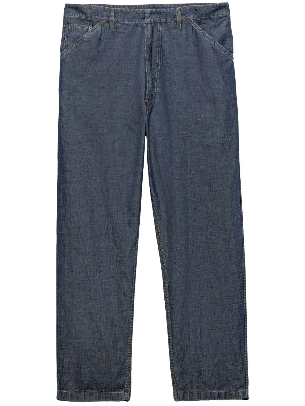 Chambray pants Highlights - Blue - Hook and zip fly fastening - Classic five pockets - Enamel triangle logo Composition Cotton 100%, Enamel 100%