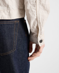 This blouson jacket with a casual attitude and timeless silhouette is made of chambray, emphasized by a rinse treatment that allows the garment to acquire unique natural characteristics over time. The lightweight style is enriched with the iconic triangle logo. - Product code: GEB255_14J2_F0ABR_S_OOO - Rinse treatment - Unlined garment - Classic fit - Shirt-style collar - Long sleeves, cuffs with one button - Zipper closure and front buttons - Patch pockets on the chest - Low welt pockets - Center-back length: 64 cm. Size: M - Straight hem - Triangle logo - Imported - The model is 188 cm tall and wears a size 48 Height: 64cm MATERIALS Main material: 65% cotton 35% linen