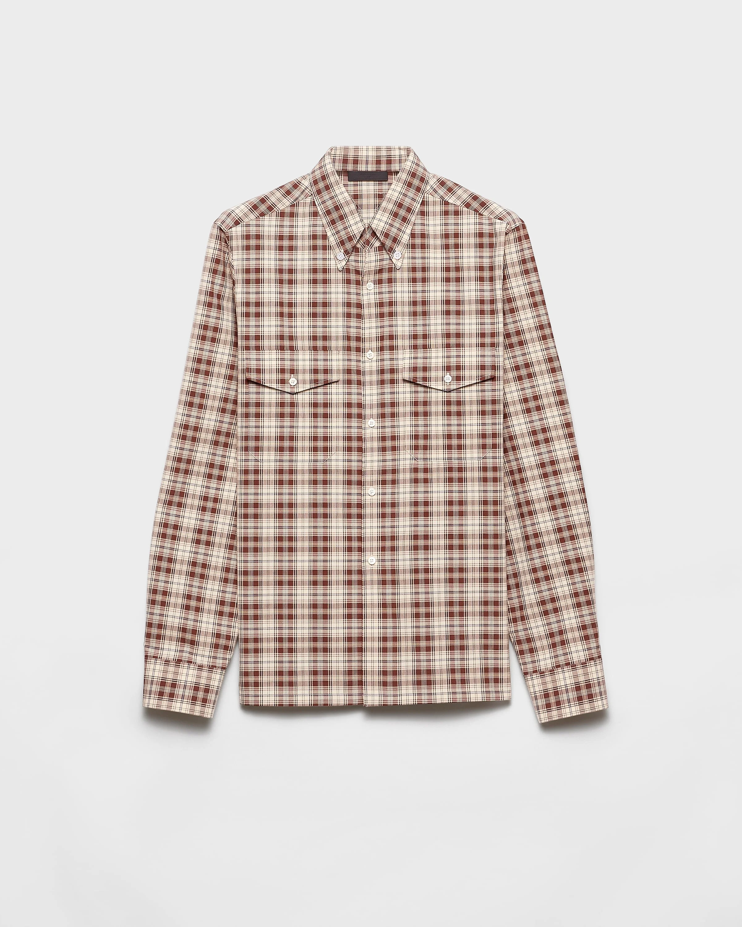 The checked shirt is reinterpreted with a construction and refined details that enrich the casual silhouette with a classic cut. The tonal triangle logo adds its signature touch to the casual, versatile style. - Product code: UCN617_171C_F060S_S_OOO - Straight fit - Button-down collar - Flapped patch pockets with mother-of-pearl button - Straight hem - Classic cuffs - Mother-of-pearl button closure - Fabric triangle logo on the back - Imported - The model is 189 cm tall and wears a size 48 Height: 72cm MATERIALS Main material: 100% cotton