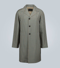Made in Italy from a wool and mohair-blend, this long-length trench coat from Prada sports an all-over check pattern and offers a relaxed fit. Product Details - Made in Italy - Pockets: side slit pockets, internal pockets - Closure: buttoned front - Designer color name: Corda - Material: 80% virgin wool, 20% mohair - Lining: 100% viscose - Care instructions: do not wash - Item number: P00441408 Size & Fit - True to size - Designed for a loose fit - The model in the picture is 185cm-6'1" and wearing a size IT 48