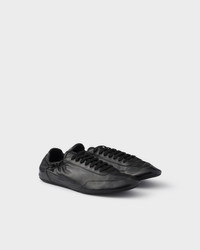 The light, design of Collapse sneakers embodies Prada's sporty and artisanal soul. The shoes made of leather with a vintage treatment are enhanced by their thin soles and elasticized sides that emphasize the softness and flexibility of the silhouette. - Product code: 2EG479_7V6_F0002_F_G001 - With laces - Upper with vintage-effect treatment - Screen-printed logo on the upper - Thin rubber sole - Sole height: 7 mm - Removable leather-covered insole - Imported MATERIALS Main material: Calfskin