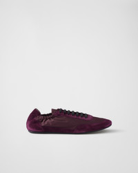 This incredibly lightweight sneaker with a structured design made of Re-Nylon and suede leather features a mix of materials that embodies Prada's sporty and artisanal soul. Its flat sole is enriched with elastic on the sides, making it easy to slip on. This product does not contribute to the SEA BEYOND educational program. - Product code: 2EG479_D7C_F0007_F_G001 - With laces - Screen-printed logo on the upper - Thin rubber sole - Removable leather-covered insole - These shoes have undergone an artisan treatment, giving the leather a deliberate vintage look. - Imported MATERIALS Main material: Recycled polyamide recycled polyester