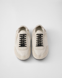 This incredibly lightweight sneaker with a structured design made of Re-Nylon and suede leather features a mix of materials that embodies Prada's sporty and artisanal soul. Its flat sole is enriched with elastic on the sides, making it easy to slip on. This product does not contribute to the SEA BEYOND educational program. - Product code: 2EG479_D7C_F0304_F_G001 - With laces - Screen-printed logo on the upper - Thin rubber sole - Removable leather-covered insole - These shoes have undergone an artisan treatment, giving the leather a deliberate vintage look. - Imported MATERIALS Main material: Recycled polyamide recycled polyester