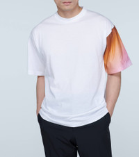 A selection from the exclusive Prada x Mytheresa Men capsule collection, the contrast technical sleeve on this regular-fit white cotton-jersey T-shirt from Prada is digitally printed with a pink and orange ombre pattern inspired by tie-dye designs from the label's Spring/Summer '00 archive. Product Details - exclusive to mytheresa.com - Care instructions: machine wash at 30 degrees - Designer color name: Bianco+Fuxia - Sleeve lining: 100% polyamide - Material: 100% cotton - Item number: P00438859 Size & Fit - True to size - Dropped shoulders - Designed for a loose fit - Falls to the hip - The model in the picture is 185cm-6'1" and wearing a size M