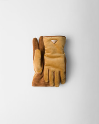 A play of contrasting textures and nuances defines the design of these corduroy and suede gloves, completed by a warm fleece lining. - Product code: 2GG179_13I4_F0346 - Enameled metal triangle logo - Fleece lining - Imported MATERIALS Main material: Cotton