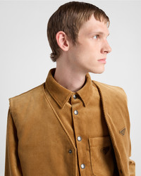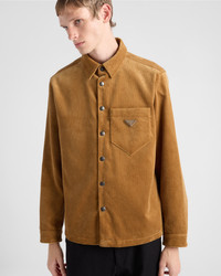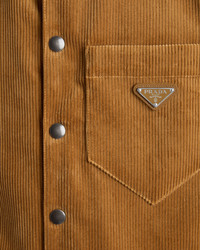 A boxy silhouette defines this corduroy shirt with Re-Nylon lining. The garment blends classic tailoring with an incredibly contemporary line. - Product code: SC798_144R_F0346_S_OOO - Loose fit - Classic collar - Classic pocket - Straight hem - Cuff with snap - Enameled metal triangle logo on the front - The fabric used to line the garment is made with regenerated nylon yarn - Imported - The model is 190 cm tall and wears a size 48 Height: 72cm MATERIALS Cotton