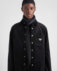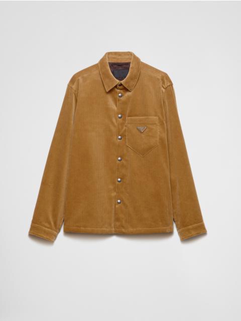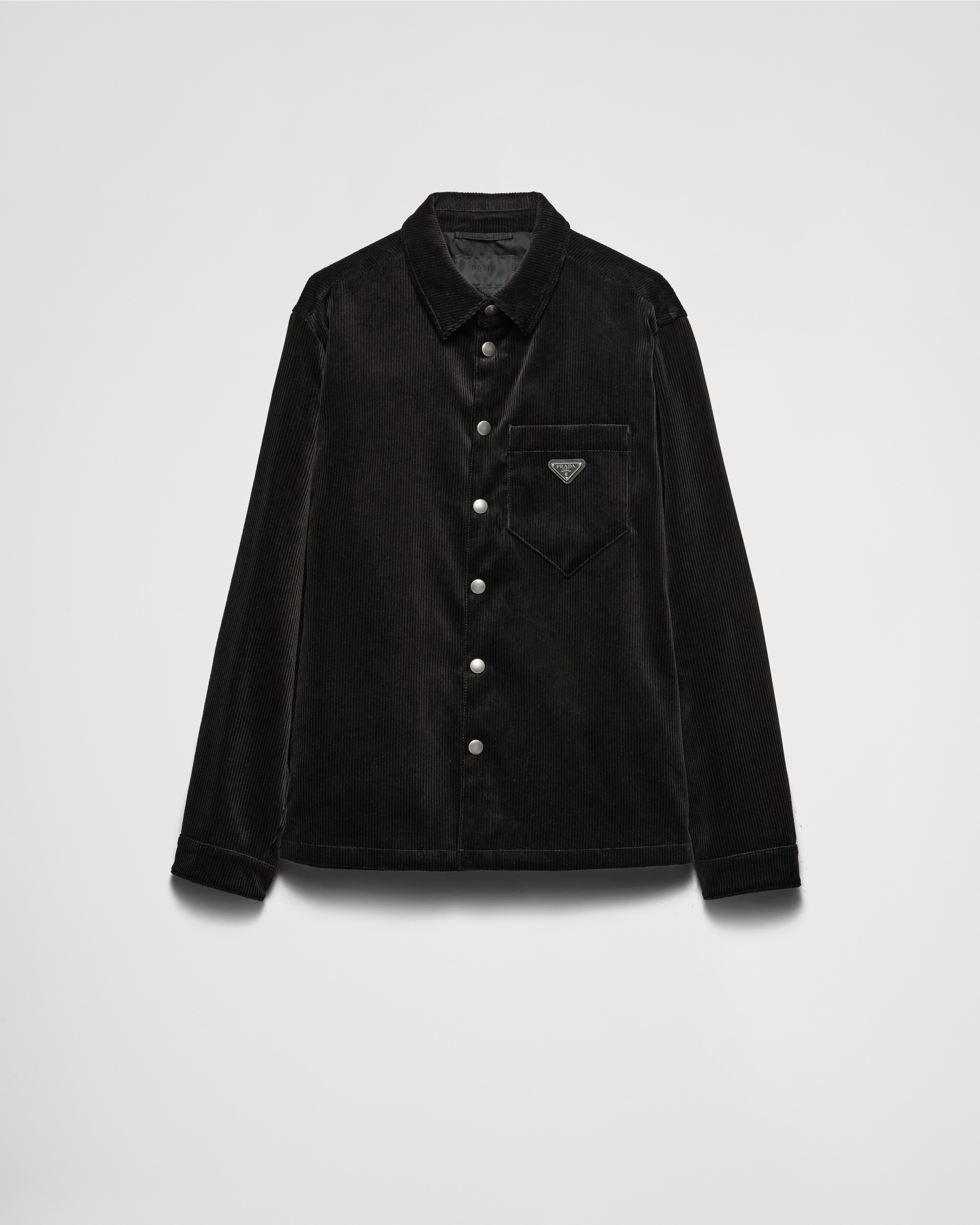 A boxy silhouette defines this corduroy shirt with Re-Nylon lining. The garment blends classic tailoring with an incredibly contemporary line. - Product code: SC798_144R_F0002_S_OOO - Loose fit - Classic collar - Classic pocket - Straight hem - Cuff with snap - Enameled metal triangle logo on the front - The fabric used to line the garment is made with regenerated nylon yarn - Imported - The model is 189 cm tall and wears a size 48 Height: 72cm MATERIALS Cotton