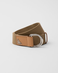 This utility-inspired woven cotton belt has a casual, pragmatic design. The accessory with a double D-ring buckle is embellished with refined touches, such as leather details and the iconic enameled metal triangle logo. - Product code: 2CN028_2A1H_F0F24 - Buckle with double D-ring - Enameled metal triangle logo - Imported Height: 3.5cm MATERIALS Main material: Polyester viscose