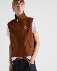 This cotton blend vest with stand-up collar and zipper closure features a contemporary design with sleek details. The style that reinterprets workwear with a minimalist aesthetic is enriched by an archive logo with a vintage finish printed in a contrasting color. - Product code: SGC630_1480_F0005_S_OOO - Regular fit - Stand-up collar - Zipper closure - Welt pockets - Regular shoulder - Straight hem - Unlined - Lettering logo printed on the front - Imported - The model is 190 cm tall and wears a size 48 Height: 62cm MATERIALS Main material: 35% cotton, 65% polyester